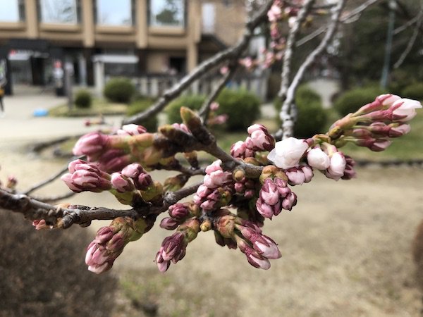 今年は例年よりも雪が非常に多く、4月になっても寒い日が続いており開花予想も難しい