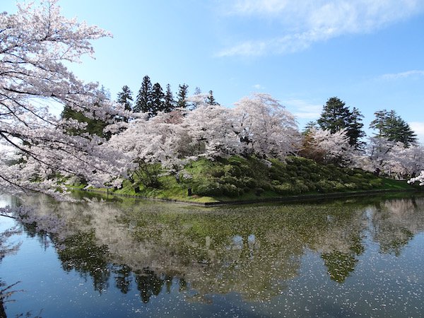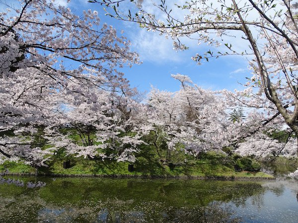 お堀の水面に映る桜が更に美しさを際立たせます。