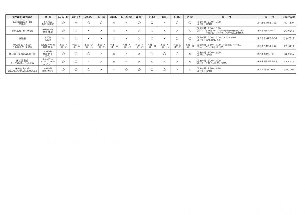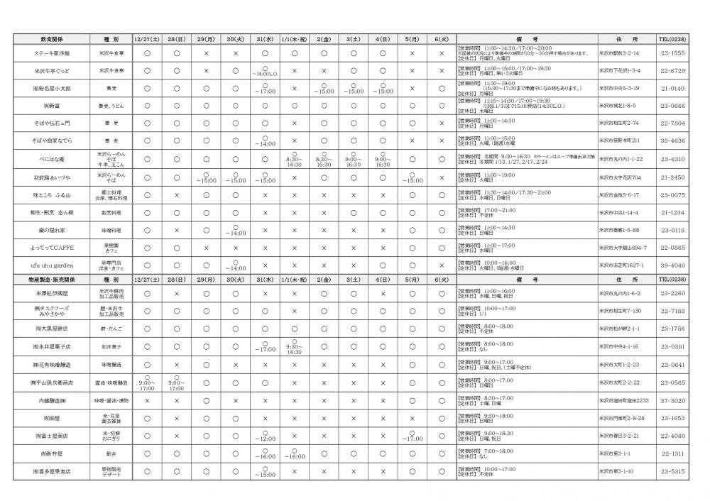 ※米沢観光コンベンション協会会員に年末年始の営業情報の提供をお願いし